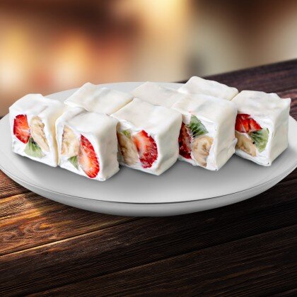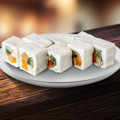 Десерт из нежного рисового теста с начинкой из кокосового мусса и душистого черничного крема. Привлекательное сочетание вкусов и удовольствие от каждого кусочка. Все десерты сделаны только из натуральных компонентов, без добавления консервантов.